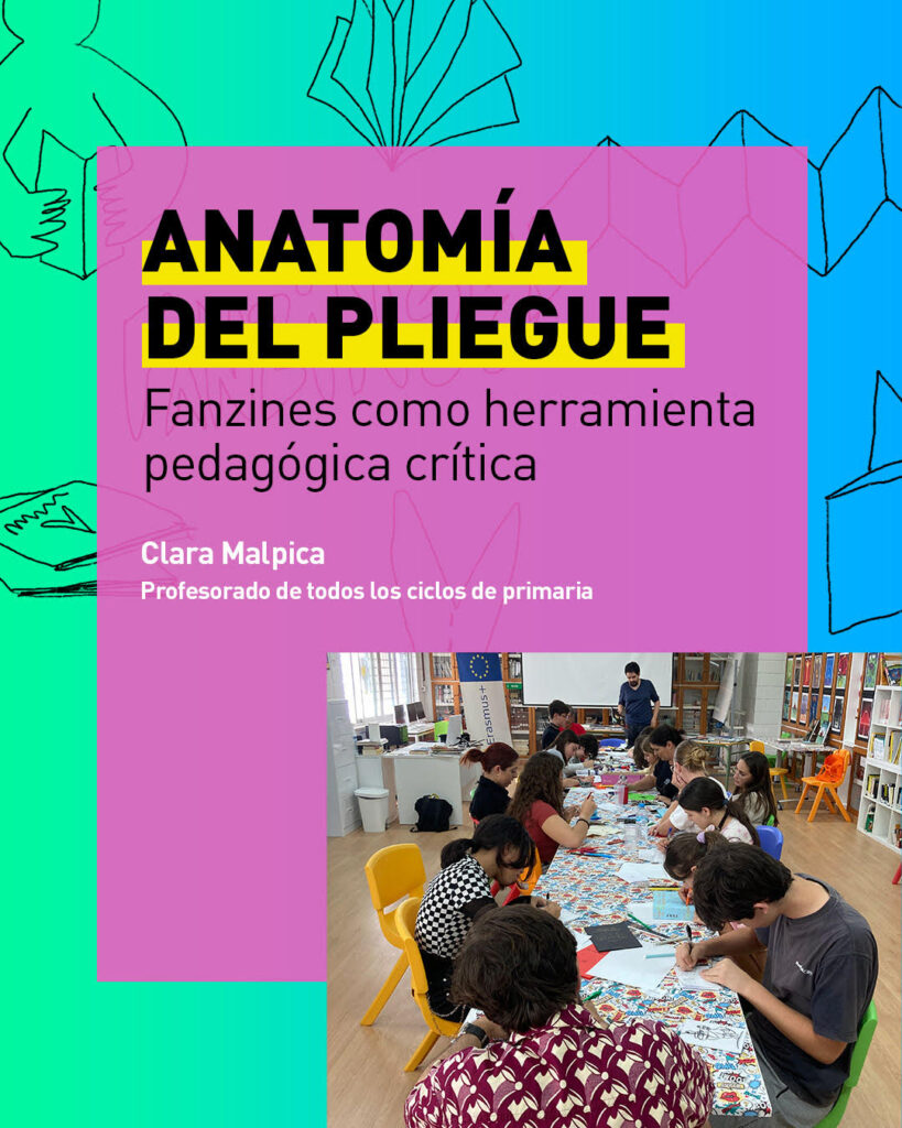 Anatomía del pliegue. Fanzines como herramienta pedagógica crítica (dossier en PDF) está dirigido a todos los ciclos de primaria. Incluye una formación presencial del programa el 17 de enero de 2026, sesiones online en febrero y marzo y visita de la artista al centro para el programa final. Participarán 7 centros educativos. Inscripciones hasta el 31 de octubre