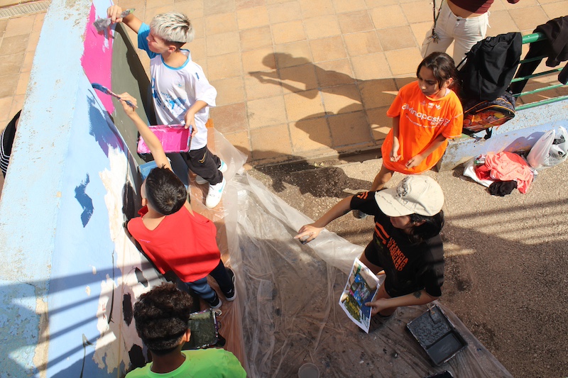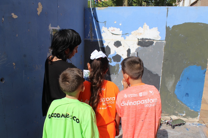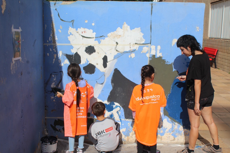 Pintar un paseo es un proyecto en desarrollo en el CEIP La Coma que propone la creación de murales artísticos en el centro, partiendo de la observación directa del entorno mediante paseos exploratorios o derivas. A lo largo de estos recorridos, se recolectan elementos como huellas, fotografías y escaneos, que conforman un imaginario colectivo. Este imaginario sirve como base para una práctica artística que reflexiona sobre el paisaje y la cotidianidad de quienes habitan el lugar, integrando el paseo, la recolección y la co-creación como parte esencial del proceso creativo.